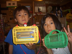 コメント:ユカちゃん らい年はこ年よりいっぱいとれるといいなと思いました。また来たいです。 フミアキ君 らいねんはもっといっぱいとりたいです。カブトムシをもらいました。 (よかったですねー) |