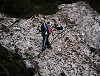 さてメインイベント唐谷(水がない)の沢登り。石がごろごろ、折れた立ち木もごろごろ!!!朋ちゃんもごろごろ、、、、? |